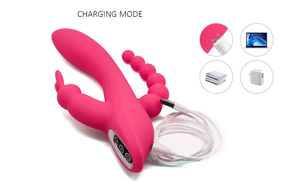3-in-1 7 Vibrating Modes Rabbit G-Spot Stimulator Anal Dildo Vibrator