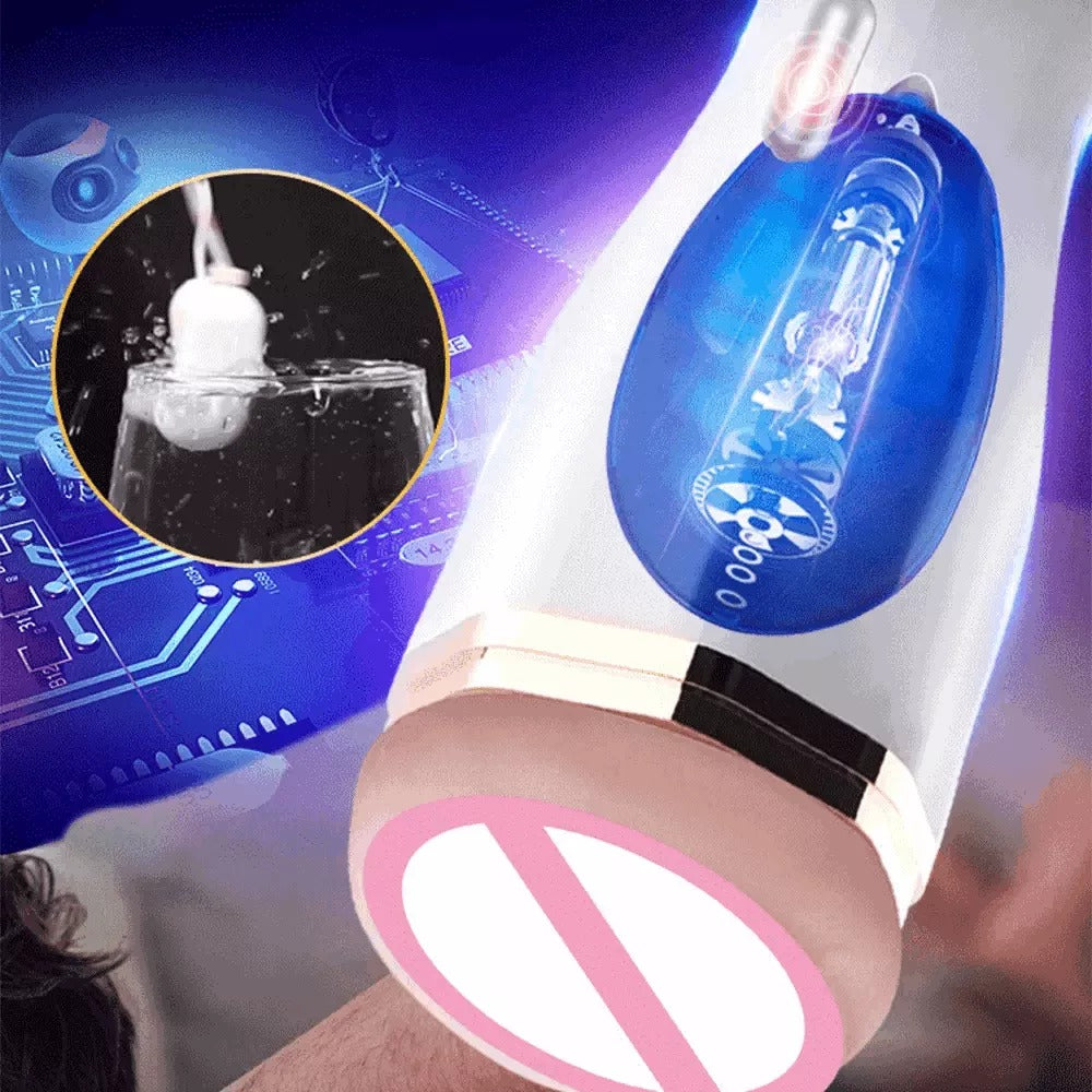 WANLE Vibrating Thrusting Suction Cup Pussy Male Masturbator