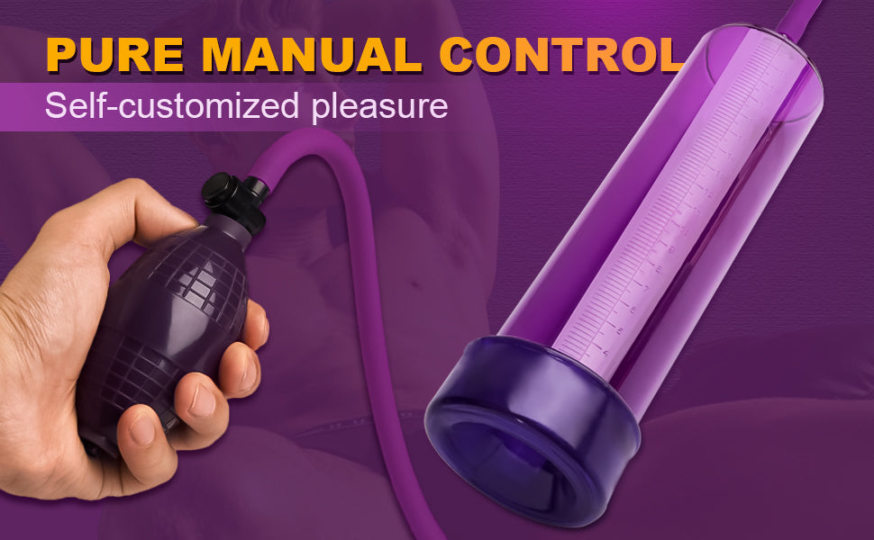 A penis pump capable of self-customizing pleasure and improvement! You must be tired of those monotonous black-white enhancing devices, right? Its amethyst-like clear appearance will leave a special impression on you. The squeezable pump ball allows you to adjust the air pressure in the cylinder to the most comfortable state through pure manual control, thereby obtaining exciting happiness. The release valve at the side of the pump ball can quickly relieve the air pressure inside the chamber to avoid any discomfort. The existence of soft and stretchy sleeve made of TPE is also to provide you with cushioning and protection during use. In addition, in order to quantify the improved penis performance, precise measurements are attached to the outside of the cylinder. How sweet!